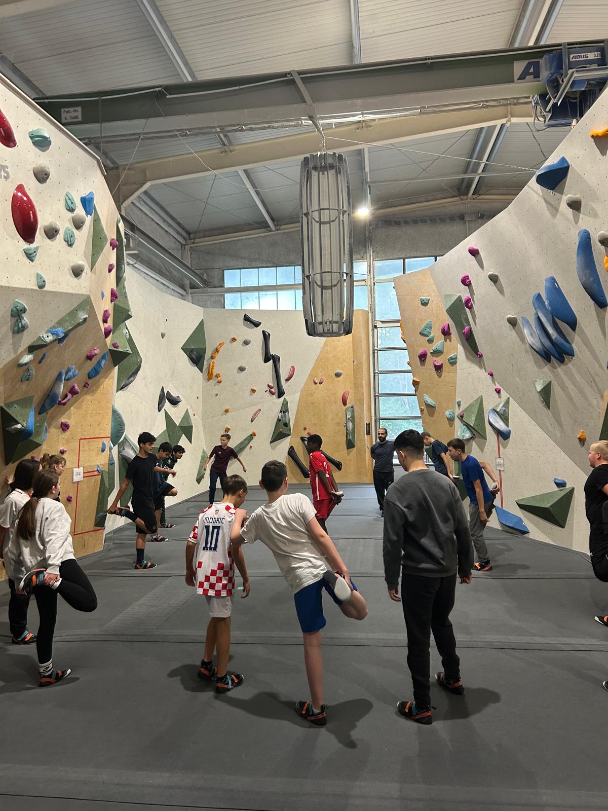 Am Dienstag verbrachten die Schülerinnen und Schüler der neu gewählten Wahlpflicht-Kurse einen Tag, um ihr neues Fach und sich untereinander besser kennenzulernen. Während der Französischkurs sich in der Schule mit französischer Landeskunde beschäftigte, verbrachte der Sportkurs einen Tag in der Kletterhalle.